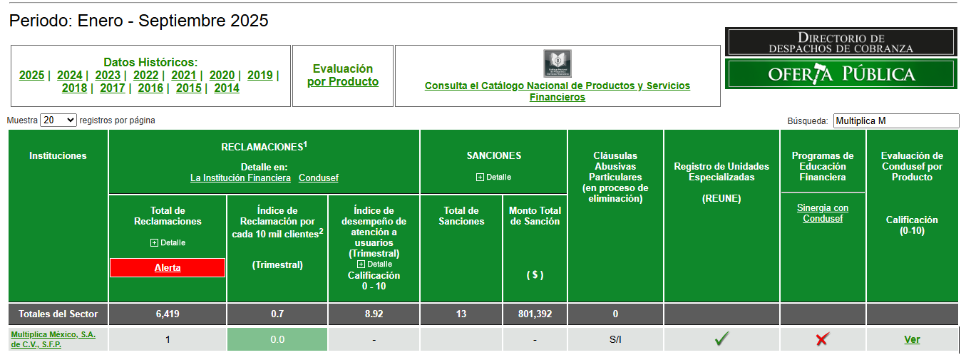 Es una herramienta de consulta y difusión con la que podrás conocer los productos que ofrecen las entidades financieras, sus comisiones y tasas, las reclamaciones de los usuarios, las prácticas no sanas en que incurren, las sanciones administrativas que les han impuesto, las cláusulas abusivas de sus contratos y otra información que resulte relevante para informarte sobre su desempeño.